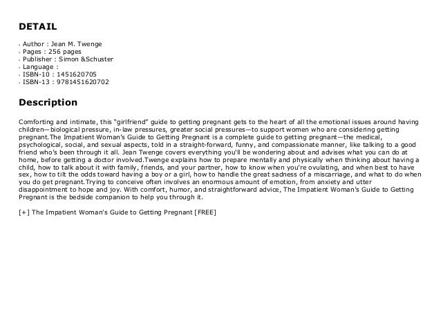 Collection Book The Impatient Woman S Guide To Getting Pregnant Video Dailymotion