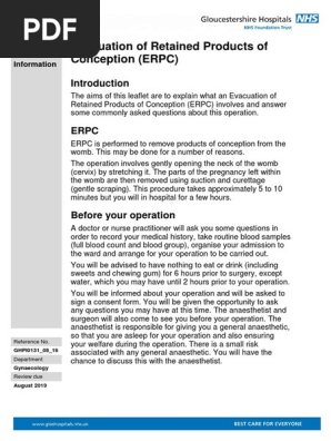 Evacuation Of Retained Products Of Conception Erpc Ghpi0131 08 16 Surgery Anesthesia