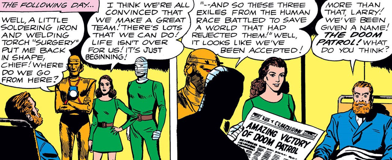 Doom patrol is a superhero team from dc comicsthe original doom patrol first appeared in my greatest adventure 80 june 1963 and was created by writers arnold drake and bob haney and artist bruno premianidoom patrol has appeared in different incarnations in multiple comics and have been adapted to other media. Nobody is still trapped inside a painting season 2 moved on without him introducing a new villain by the name of. Doom patrol vol 2 tpb from dc comics. This graphic novel collects doom patrol 35 50.